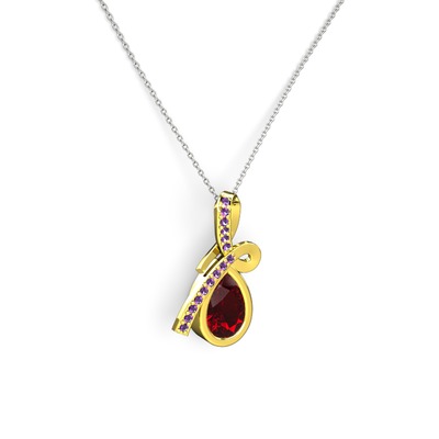 Ametist ve garnet 18 ayar altın kolye (40 cm beyaz altın rolo zincir)