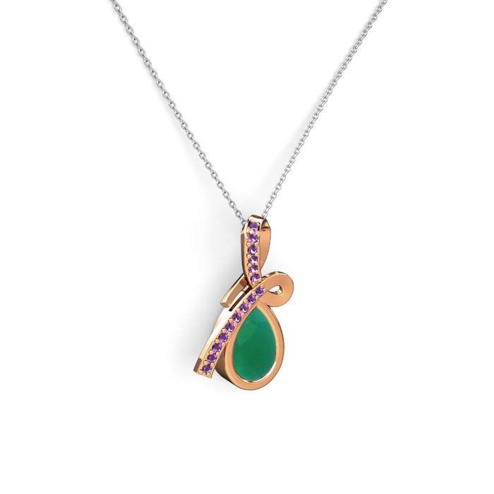Ametist ve kök zümrüt 925 ayar rose altın kaplama gümüş kolye (40 cm beyaz altın rolo zincir)