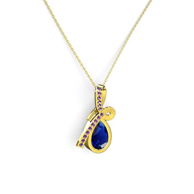 Ametist ve lab safir 14 ayar altın kolye (40 cm altın rolo zincir)