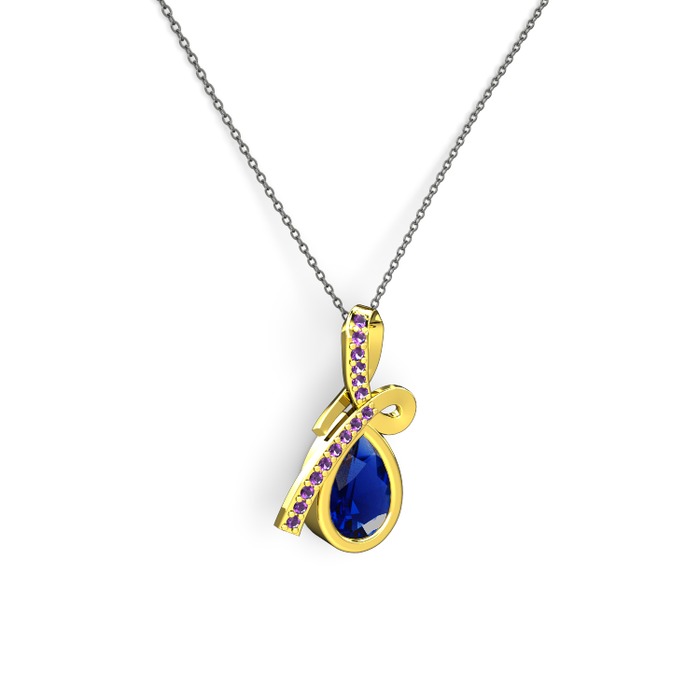 Ametist ve lab safir 18 ayar altın kolye (40 cm gümüş rolo zincir)