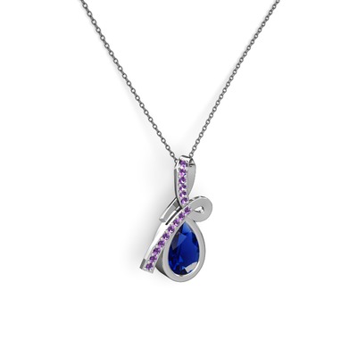 Ametist ve lab safir 8 ayar beyaz altın kolye (40 cm gümüş rolo zincir)