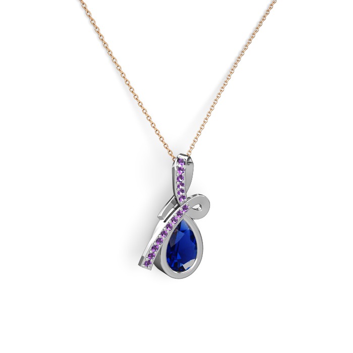 Ametist ve lab safir 925 ayar gümüş kolye (40 cm gümüş rolo zincir)