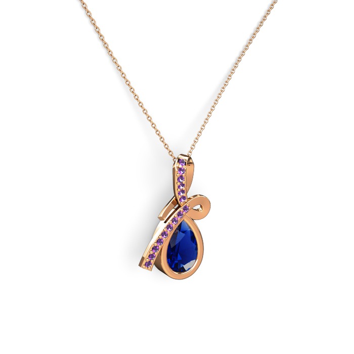 Ametist ve lab safir 925 ayar rose altın kaplama gümüş kolye (40 cm rose altın rolo zincir)