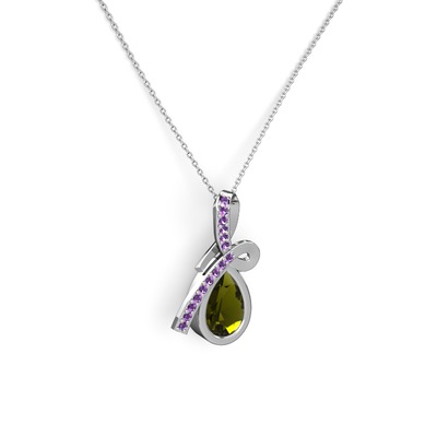 Ametist ve peridot 925 ayar gümüş kolye (40 cm beyaz altın rolo zincir)