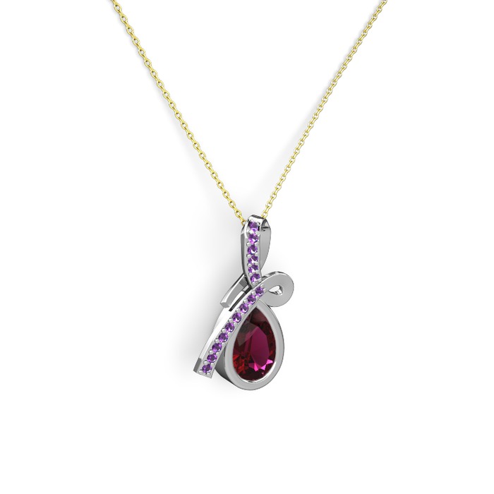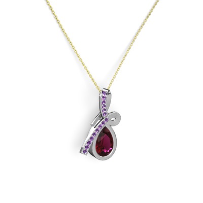 Ametist ve rodolit garnet 925 ayar gümüş kolye (40 cm gümüş rolo zincir)