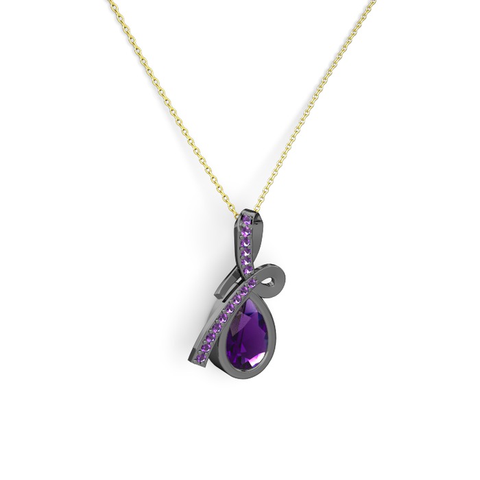 Ametist 925 ayar siyah rodyum kaplama gümüş kolye (40 cm gümüş rolo zincir)
