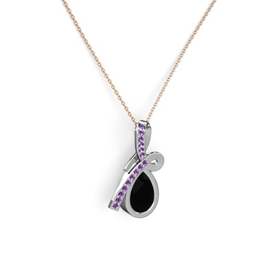 Ametist ve siyah zirkon 925 ayar gümüş kolye (40 cm gümüş rolo zincir)