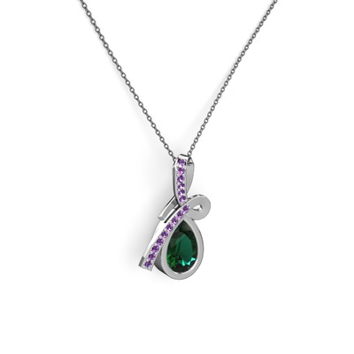 Ametist ve yeşil kuvars 8 ayar beyaz altın kolye (40 cm gümüş rolo zincir)