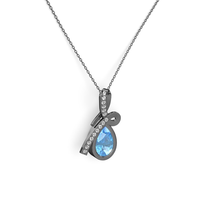Beyaz zirkon ve akuamarin 925 ayar siyah rodyum kaplama gümüş kolye (40 cm gümüş rolo zincir)