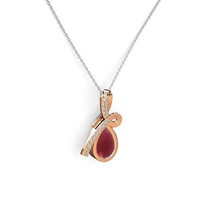 Beyaz zirkon ve kök yakut 14 ayar rose altın kolye (40 cm beyaz altın rolo zincir)