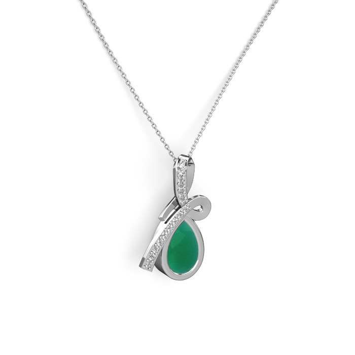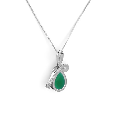 Beyaz zirkon ve kök zümrüt 8 ayar beyaz altın kolye (40 cm beyaz altın rolo zincir)