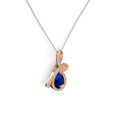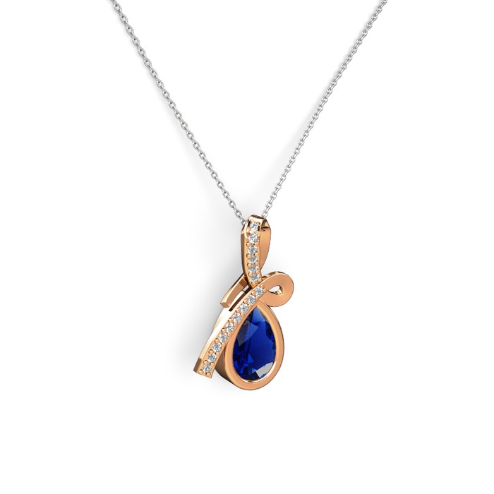 Beyaz zirkon ve lab safir 18 ayar rose altın kolye (40 cm beyaz altın rolo zincir)
