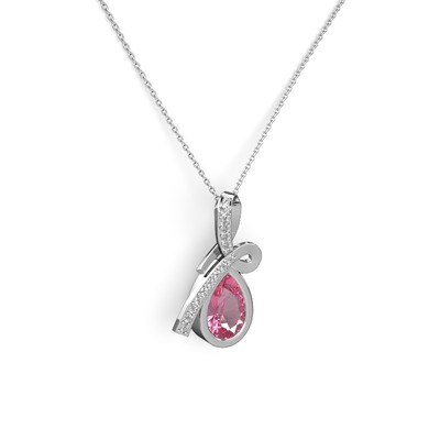 Beyaz zirkon ve pembe kuvars 925 ayar gümüş kolye (40 cm beyaz altın rolo zincir)