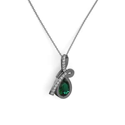 Beyaz zirkon ve yeşil kuvars 925 ayar siyah rodyum kaplama gümüş kolye (40 cm gümüş rolo zincir)