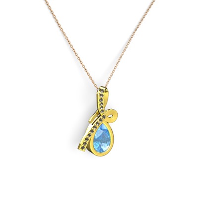 Dumanlı kuvars ve akuamarin 14 ayar altın kolye (40 cm gümüş rolo zincir)