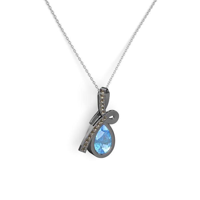 Dumanlı kuvars ve akuamarin 925 ayar siyah rodyum kaplama gümüş kolye (40 cm beyaz altın rolo zincir)