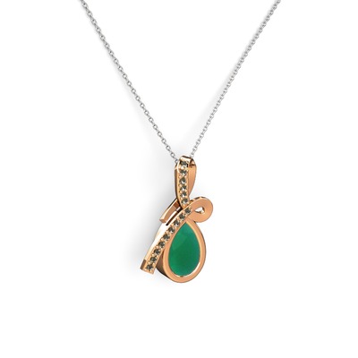 Dumanlı kuvars ve kök zümrüt 925 ayar rose altın kaplama gümüş kolye (40 cm beyaz altın rolo zincir)