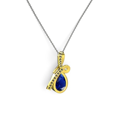 Dumanlı kuvars ve lab safir 8 ayar altın kolye (40 cm gümüş rolo zincir)