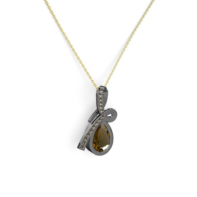 Dumanlı kuvars 925 ayar siyah rodyum kaplama gümüş kolye (40 cm altın rolo zincir)