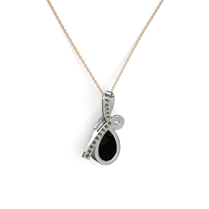 Dumanlı kuvars ve siyah zirkon 18 ayar beyaz altın kolye (40 cm rose altın rolo zincir)