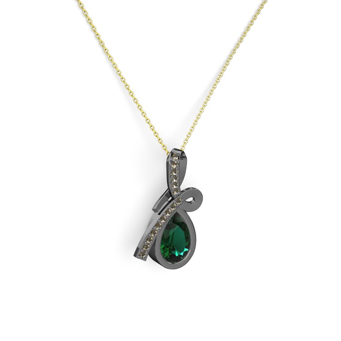 Dumanlı kuvars ve yeşil kuvars 925 ayar siyah rodyum kaplama gümüş kolye (40 cm altın rolo zincir)