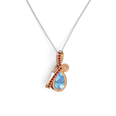 Garnet ve akuamarin 18 ayar rose altın kolye (40 cm gümüş rolo zincir)