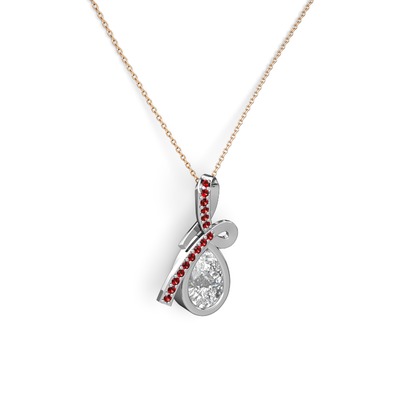 Garnet ve beyaz zirkon 925 ayar gümüş kolye (40 cm gümüş rolo zincir)