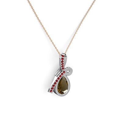 Garnet ve dumanlı kuvars 18 ayar beyaz altın kolye (40 cm rose altın rolo zincir)