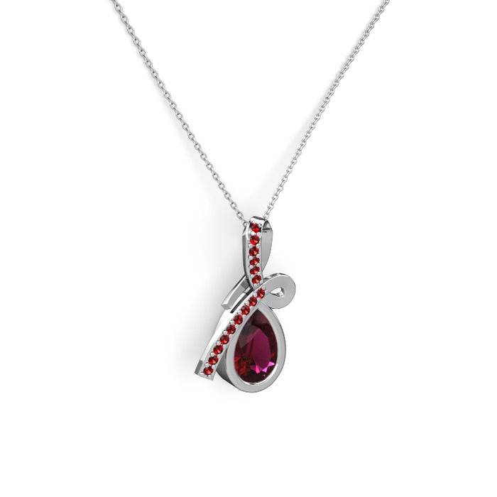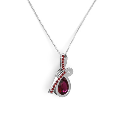 Garnet ve rodolit garnet 18 ayar beyaz altın kolye (40 cm beyaz altın rolo zincir)