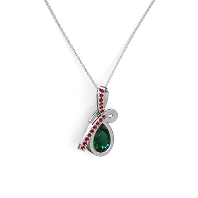 Garnet ve yeşil kuvars 18 ayar beyaz altın kolye (40 cm beyaz altın rolo zincir)