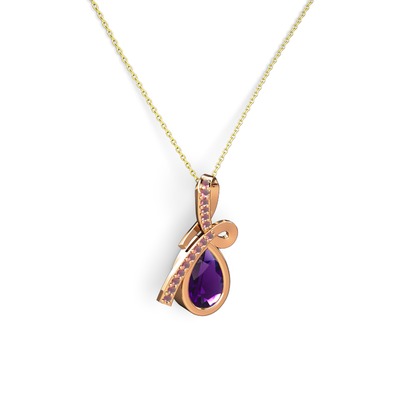 Kök yakut ve ametist 18 ayar rose altın kolye (40 cm altın rolo zincir)