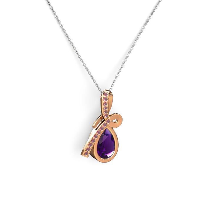 Kök yakut ve ametist 8 ayar rose altın kolye (40 cm beyaz altın rolo zincir)