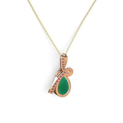 Kök yakut ve kök zümrüt 8 ayar rose altın kolye (40 cm gümüş rolo zincir)