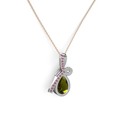 Kök yakut ve peridot 925 ayar gümüş kolye (40 cm rose altın rolo zincir)