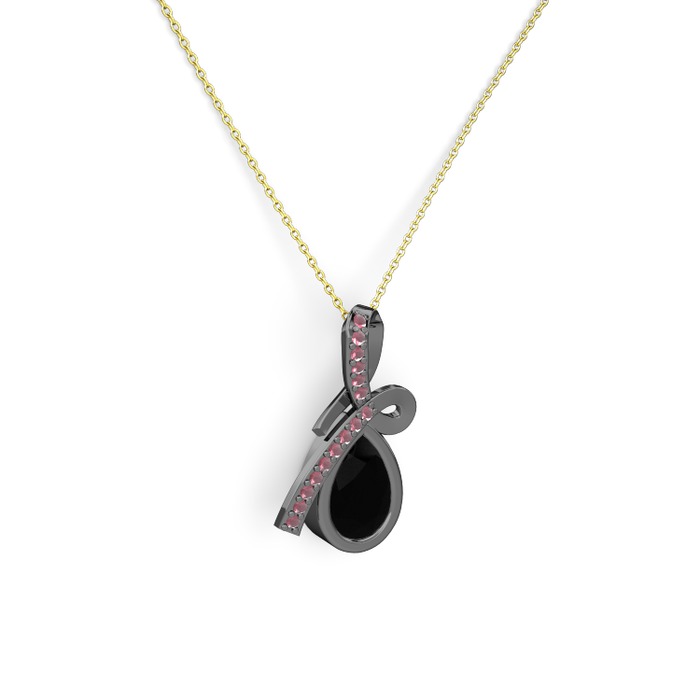 Kök yakut ve siyah zirkon 925 ayar siyah rodyum kaplama gümüş kolye (40 cm altın rolo zincir)