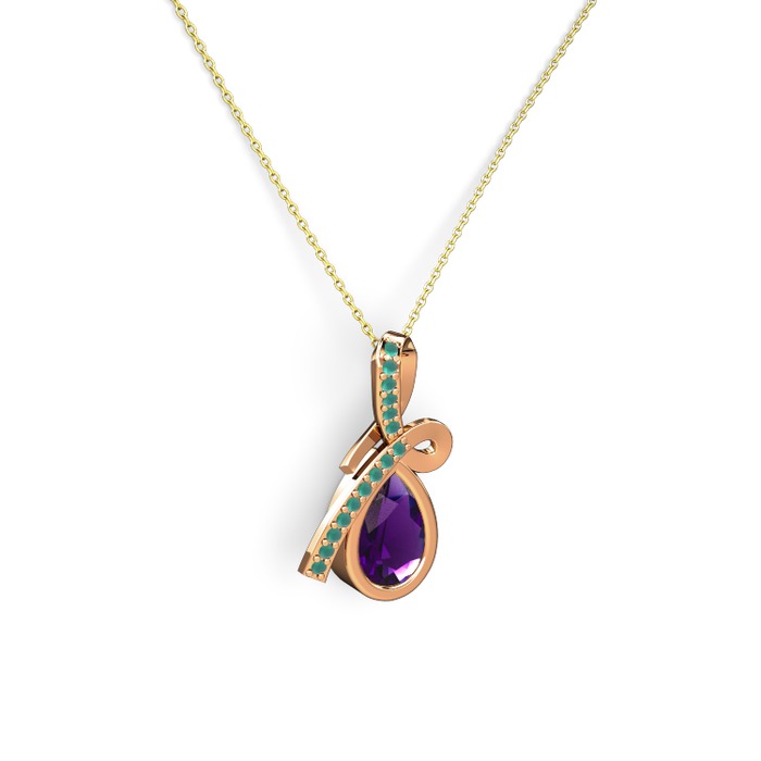 Kök zümrüt ve ametist 14 ayar rose altın kolye (40 cm altın rolo zincir)