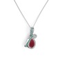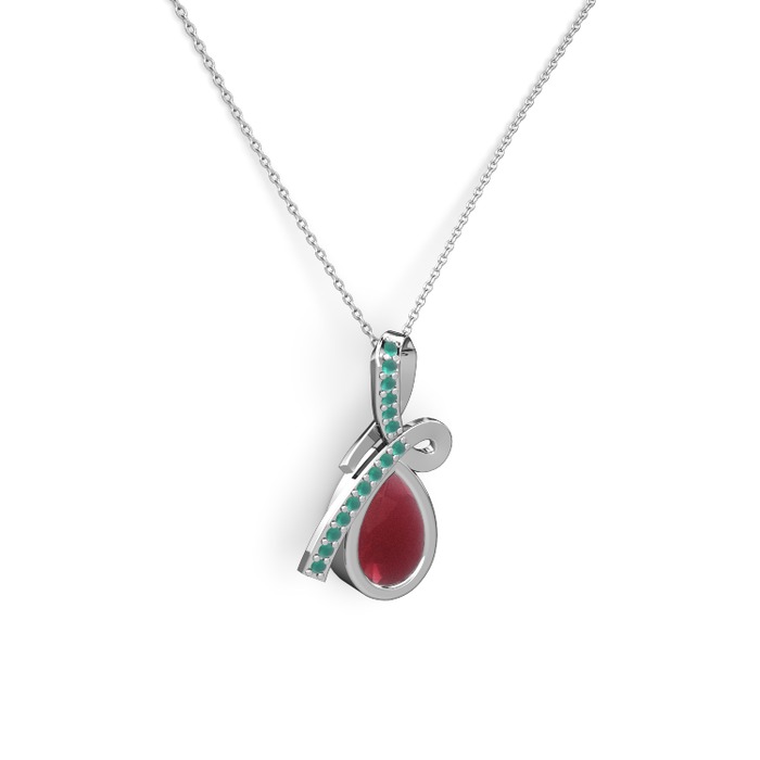 Kök zümrüt ve kök yakut 8 ayar beyaz altın kolye (40 cm beyaz altın rolo zincir)