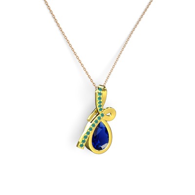 Kök zümrüt ve lab safir 8 ayar altın kolye (40 cm gümüş rolo zincir)