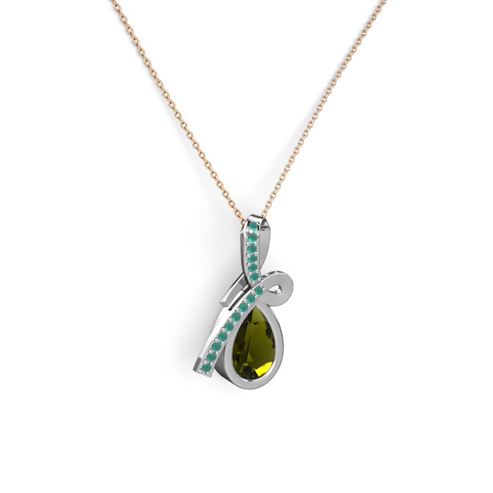Kök zümrüt ve peridot 925 ayar gümüş kolye (40 cm gümüş rolo zincir)