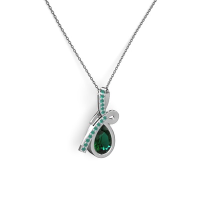 Kök zümrüt ve yeşil kuvars 925 ayar gümüş kolye (40 cm gümüş rolo zincir)