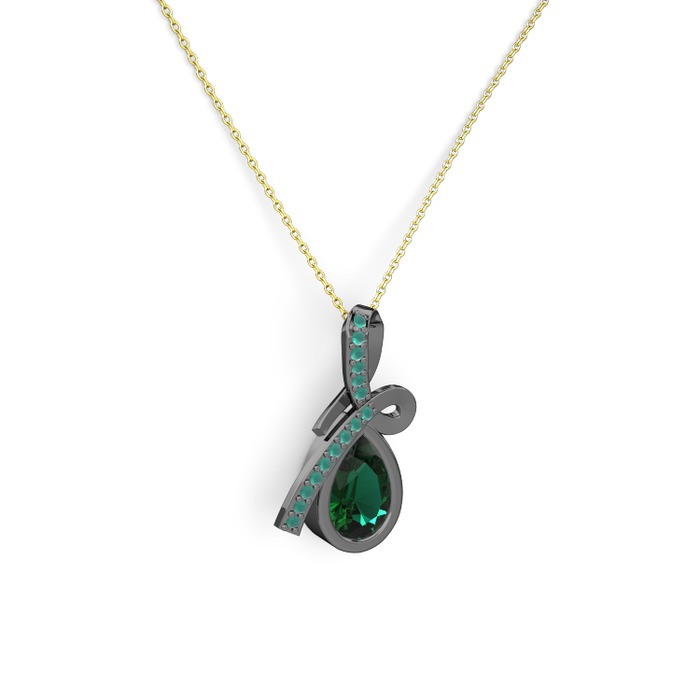 Kök zümrüt ve yeşil kuvars 925 ayar siyah rodyum kaplama gümüş kolye (40 cm altın rolo zincir)