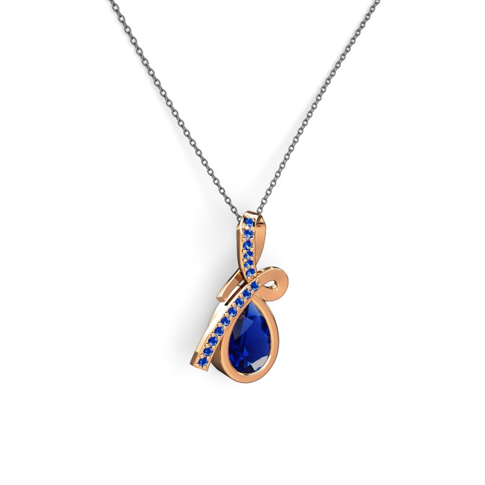 Lab safir 8 ayar rose altın kolye (40 cm gümüş rolo zincir)
