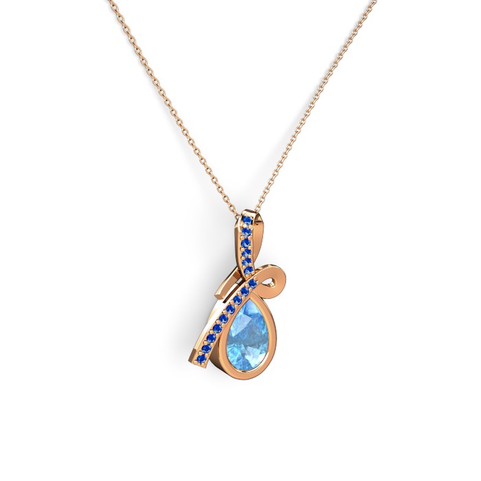 Lab safir ve akuamarin 925 ayar rose altın kaplama gümüş kolye (40 cm gümüş rolo zincir)