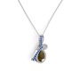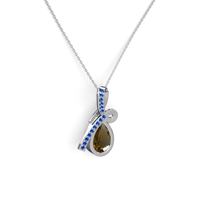Lab safir ve dumanlı kuvars 14 ayar beyaz altın kolye (40 cm beyaz altın rolo zincir)