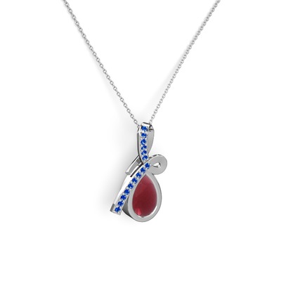 Lab safir ve kök yakut 14 ayar beyaz altın kolye (40 cm beyaz altın rolo zincir)