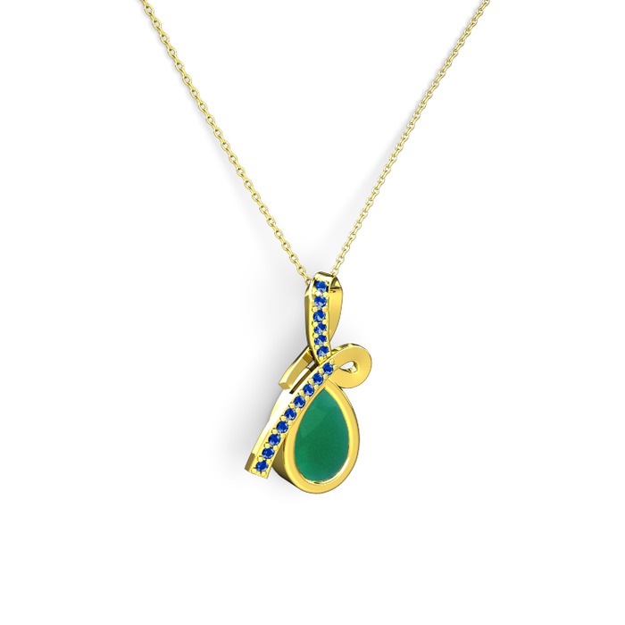 Lab safir ve kök zümrüt 925 ayar altın kaplama gümüş kolye (40 cm altın rolo zincir)
