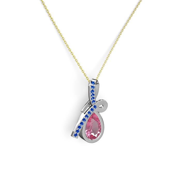 Lab safir ve pembe kuvars 14 ayar beyaz altın kolye (40 cm altın rolo zincir)