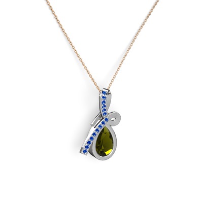 Lab safir ve peridot 18 ayar beyaz altın kolye (40 cm gümüş rolo zincir)