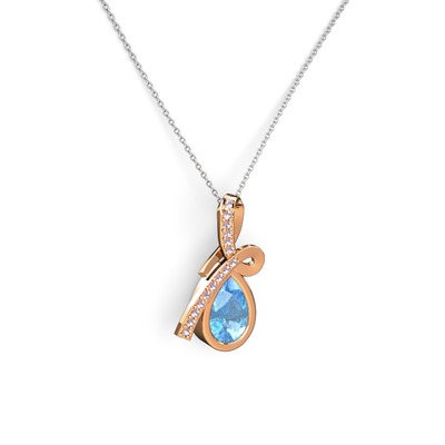 Pembe kuvars ve akuamarin 8 ayar rose altın kolye (40 cm beyaz altın rolo zincir)