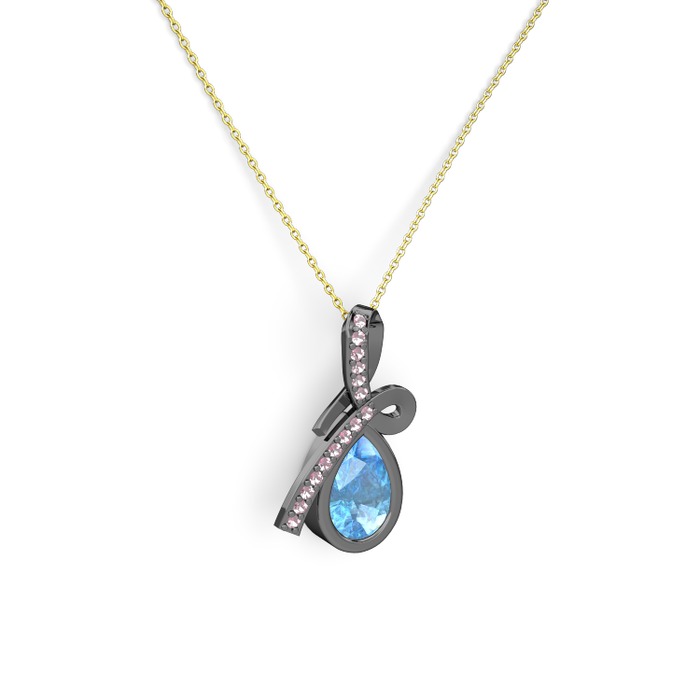 Pembe kuvars ve akuamarin 925 ayar siyah rodyum kaplama gümüş kolye (40 cm altın rolo zincir)